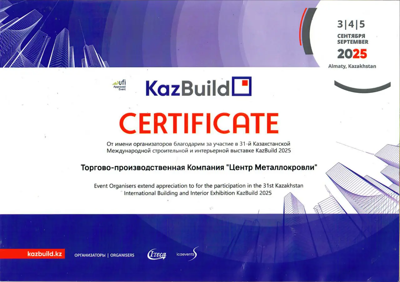 Сертификаты официального дистрибьютора подтверждают право ТПК «Центр Металлокровли» на продажу и обслуживание продукции ведущих российских и мировых брендов в Туркестане по выгодным ценам. Мы работаем напрямую с производителями, что гарантирует подлинность товаров, актуальность ассортимента и соблюдение всех требований по качеству и гарантии.